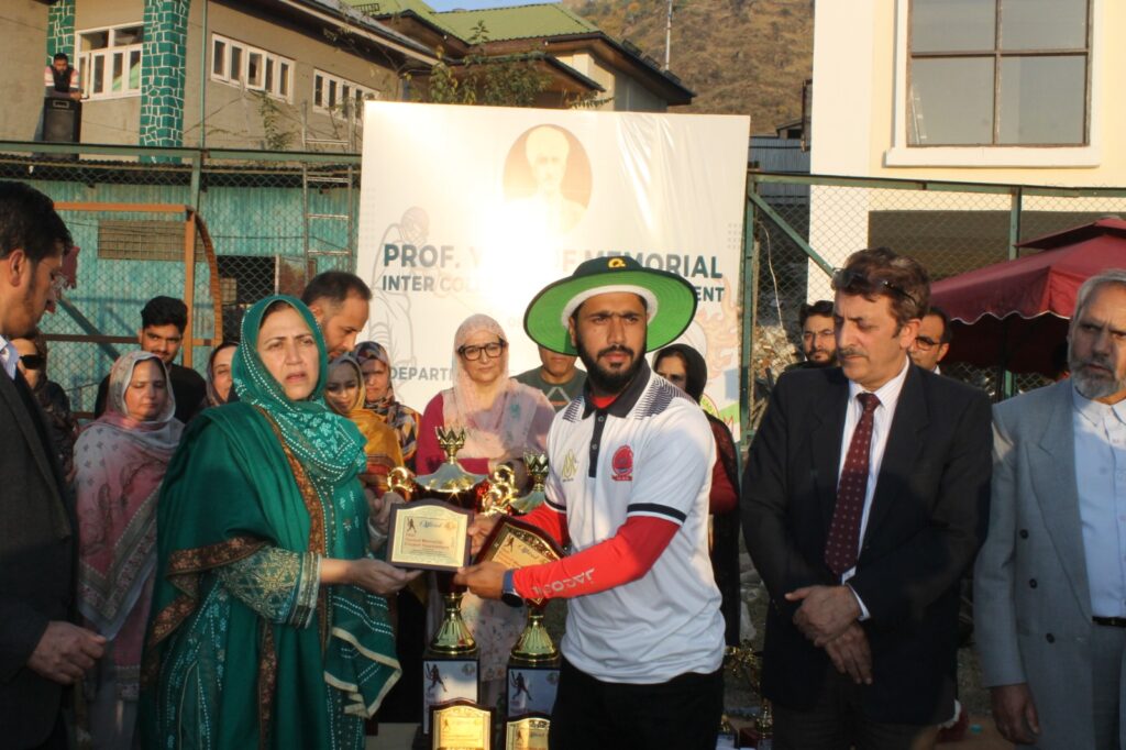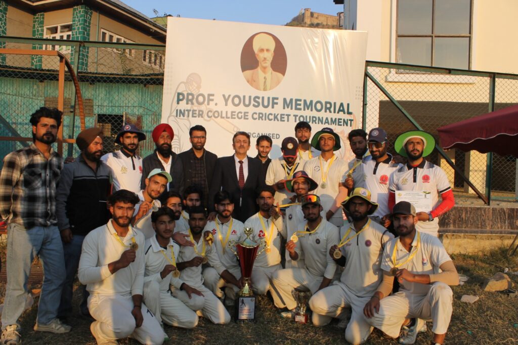 Budgam, October 28, 2025: Sheikh-ul-Alam Memorial Government Degree College, Budgam, emerged as the champions of the 16th Edition of the Prof. Mohammad Yousuf Memorial Inter-College Cricket Tournament, defeating Government Degree College, Sopore in the thrilling final match held at the Islamia College Ground, Srinagar. The Director Colleges, JK, Prof. (Dr.) Sheikh Aijaz Bashir graced the occasion of witnessing the match. After winning the toss, GDC Budgam elected to bat first and posted a competitive total of 150 runs in 23 overs, with Majid Ahmad Lone emerging as the top scorer, contributing a well-played 43 runs to the team’s total.