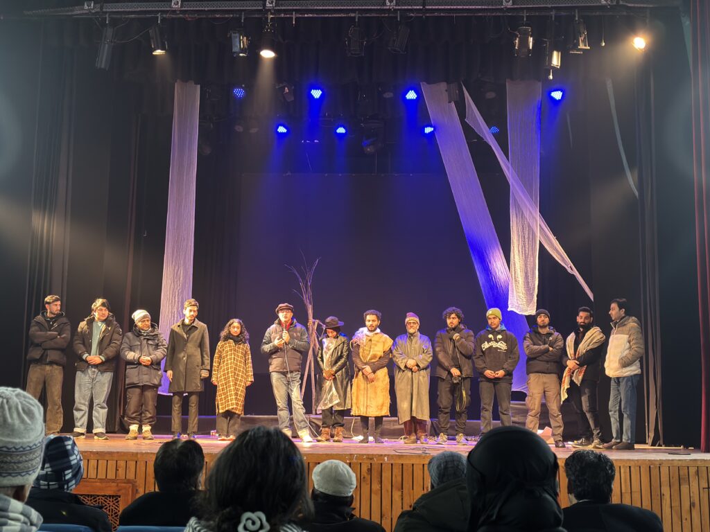 The Travellers of Barzakh, a Neo-Absurd play presented by Peathre Baraye’ Kasheer (TfK), was staged on 16 December at Tagore Hall, drawing a full-house audience despite the harsh Kashmiri winter, with night temperatures dipping close to –4°C. The show was performed in the late afternoon, a time that subtly echoed the philosophical condition the play inhabits—poised between arrival and departure, light and darkness, certainty and suspension. The packed auditorium stood as a testament to the audience’s commitment to serious, reflective theatre, even under extreme weather conditions.