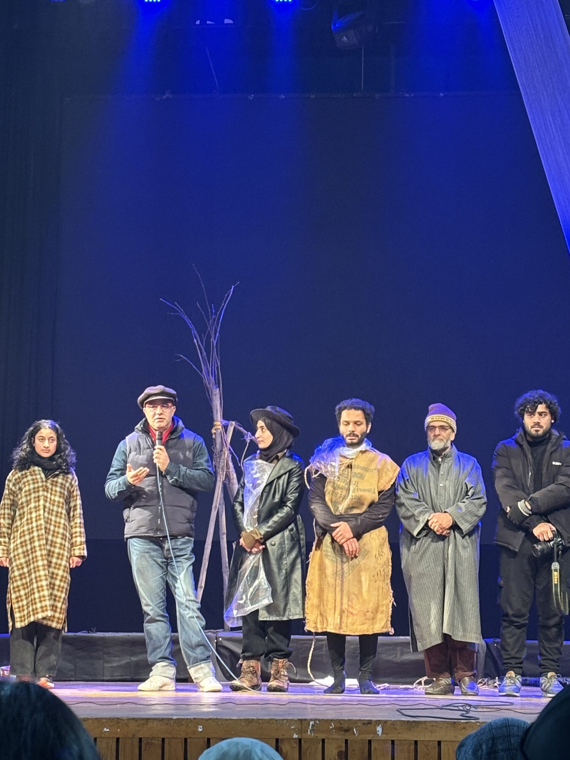 The performers—young students aged 18 to 23—appeared on stage for the first time, yet displayed remarkable restraint, control, and philosophical engagement. Zoya Qazi as Bokut, Sania Mukhtar as Nayib, Faizaan as Qismat, and Saqlain Syed as Potcs delivered performances marked by precision and maturity, earning sustained applause from the audience. Their training under the TfK Repertory was evident in their disciplined physicality and their refusal to over-perform meaning, allowing silence and stillness to speak with force.